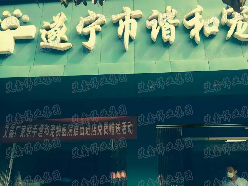 艾鑫廠家聯手遂寧市和諧寵物醫院推出進店免費贈送活動