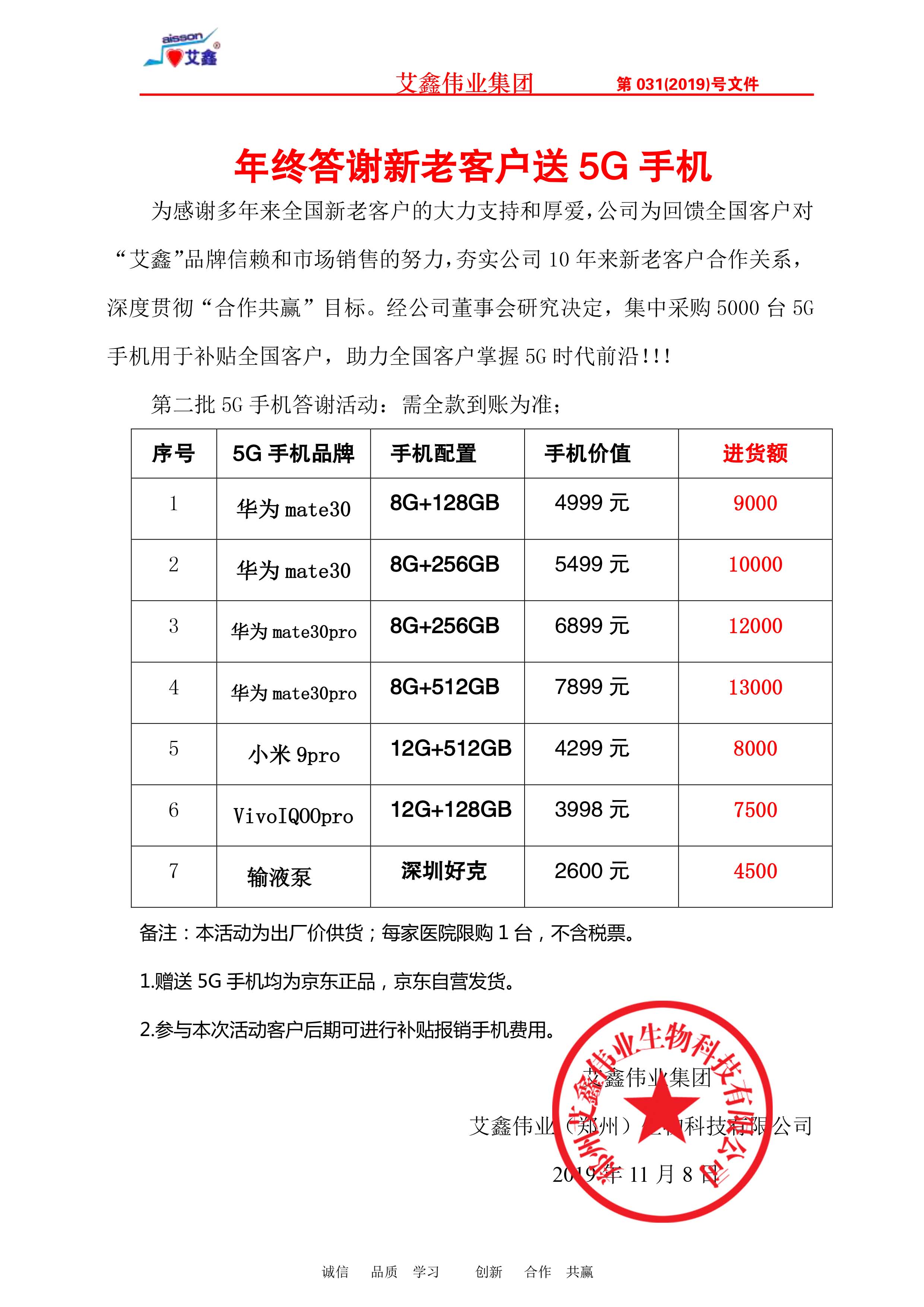 為回饋公司10年的新老客戶的支持和厚愛,同時也為加大2020年的招商進(jìn)度、加快實(shí)現(xiàn)全國3500家授權(quán)合作寵物醫(yī)院的目標(biāo),公司決定自2019年11月11日起,公司將不惜代價、不顧成本的推出特大送5G手機(jī)政策。